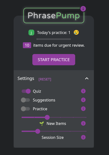 Also, the original post linked one of my older negative reviews of PhrasePump. My opinion has changed significantly since then — I haven’t found anything else that comes close to PhrasePump in effectiveness for an SRS system.