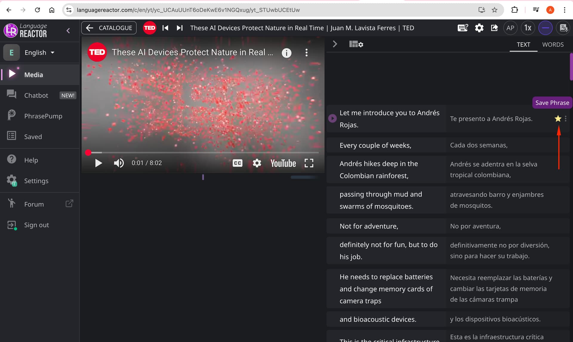 To save phrases, you need to be logged in and have a PRO subscription(or trial)