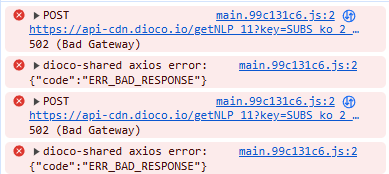 Console output has 502 error upon POST request to api-cdn.dioco.io :