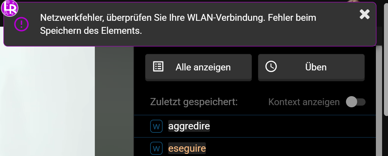 For a week now, everytime I click on a word to save it it turns orange for a couple of seconds and then LR tells me that the word can’t be saved due to a network error and then it turns white although my internet connection works just fine on every other website even on the LR website but the transfer from Youtube to LR doesn’t seem to work. I already tried everything like reloading, signing out and signing back in on LR …
