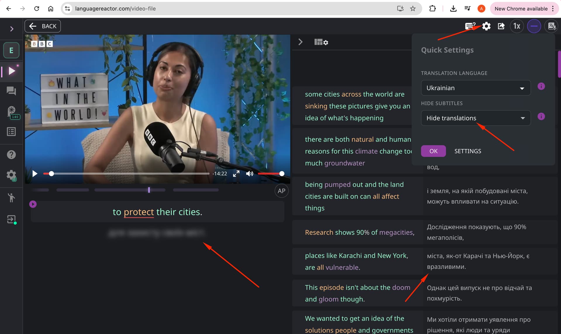 Is it possible to view the subtitle in original language on the main window and at the same time the translation in the subtitle list.