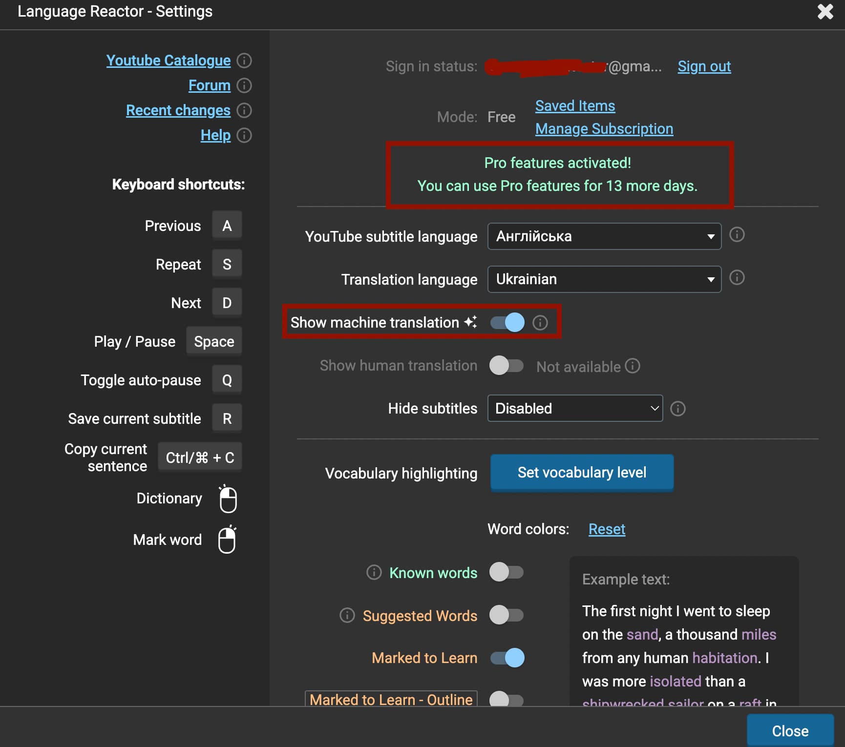 Hello! I’m new to Language Reactor, I just created an account. I am particularly interested in the machine translation for Netflix, but it is a pro feature. I have seen people discussing a 14-day pro-trial but can’t find it anywhere on the website… Anyone able to guide me to it?
