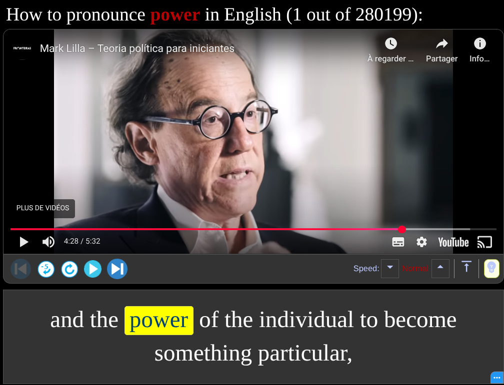 I really feel that a missing feature is the ability to search for a word and directly access the sentence containing that word in a video from the YouTube or Netflix catalog, which a site like https://youglish.com/ allows for example, Thanks.
