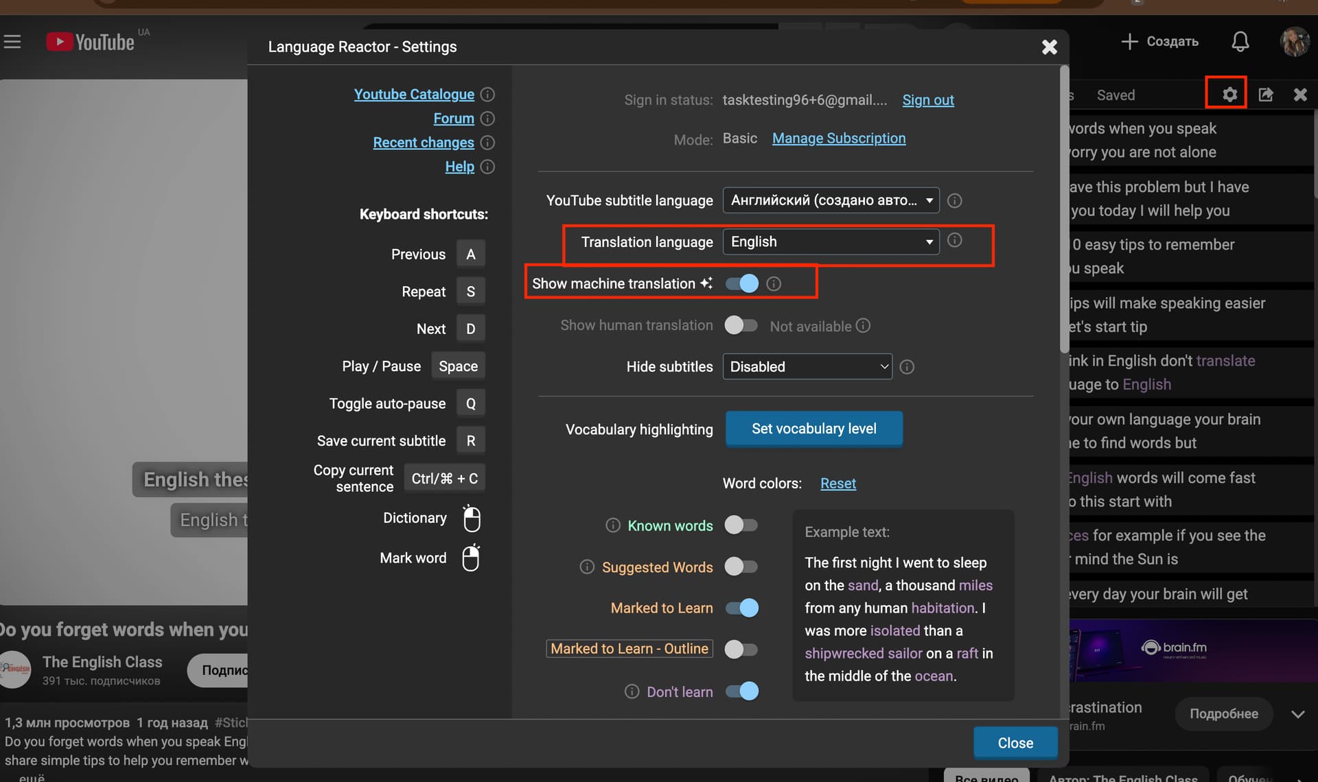 This error may occur because of an ad that appears before the video and then doesn’t go away. Just close the error message, open the extension settings, select “Translation language,” and make sure the “Show machine translation” toggle is turned on.